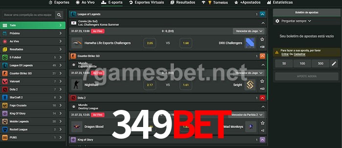 O 349bet oferece uma grande seleção de opções de apostas em e-sports com probabilidades competitivas